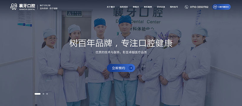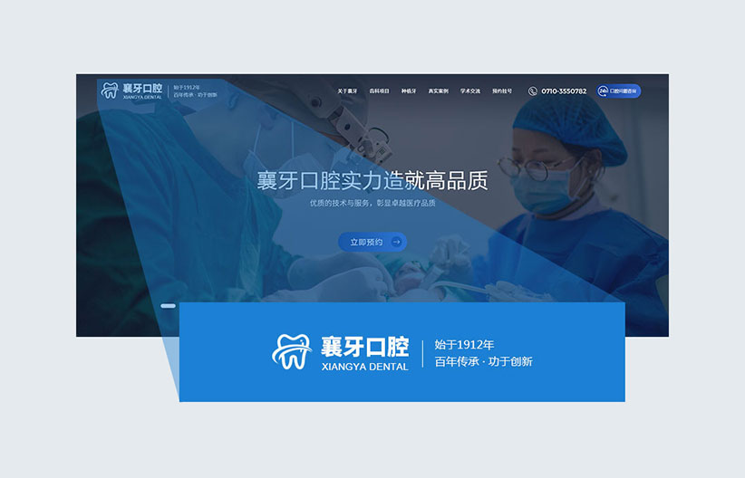 为了更好了表达襄牙口腔是一家有着百年传承的老店,我们在logo旁放置了一个“始于1912年,百年传承•功于创新”的标语,让访客无论浏览到哪个页面,都可以看到它。