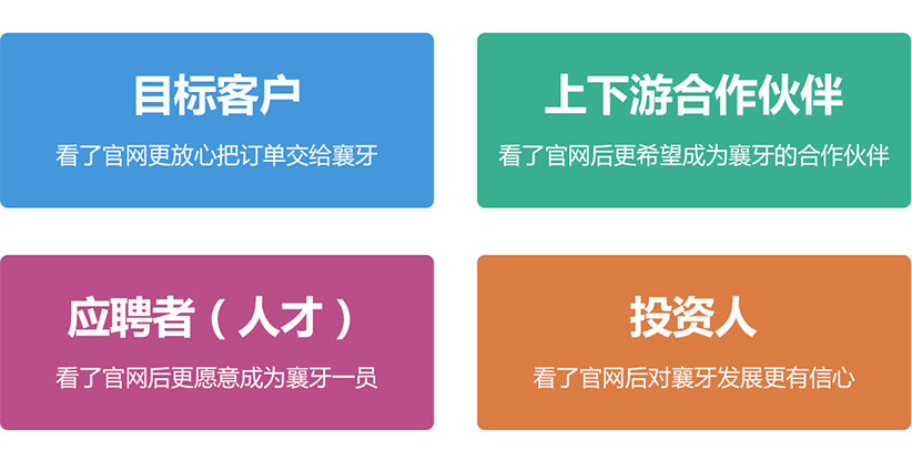 我们多次沟通和调研,最终我们确定了以下四个场景来决定新网站方向。只有让这4个目标群体在看到襄牙的官网后都能产生好感并愿意持续关注,才算真正达成了赵总给出的建站目标。