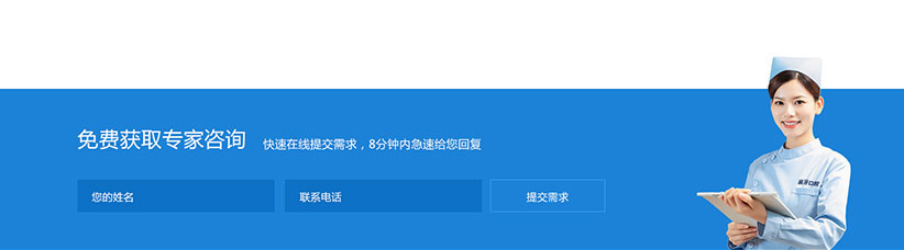 在Banner设计上, 为了增加访客的信任度,我们选择放置了医院的真实治疗操作图片,而不是同行常用的网络图片,这样让访客更能感到真实性,更能体现医院的专业性。