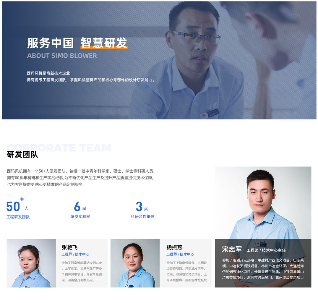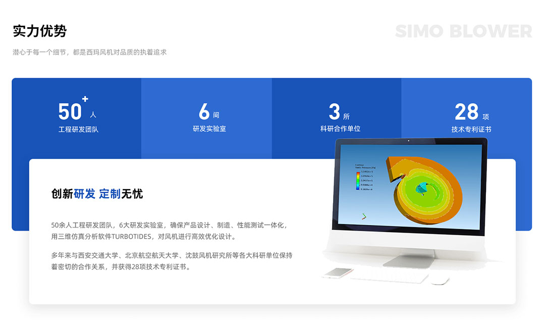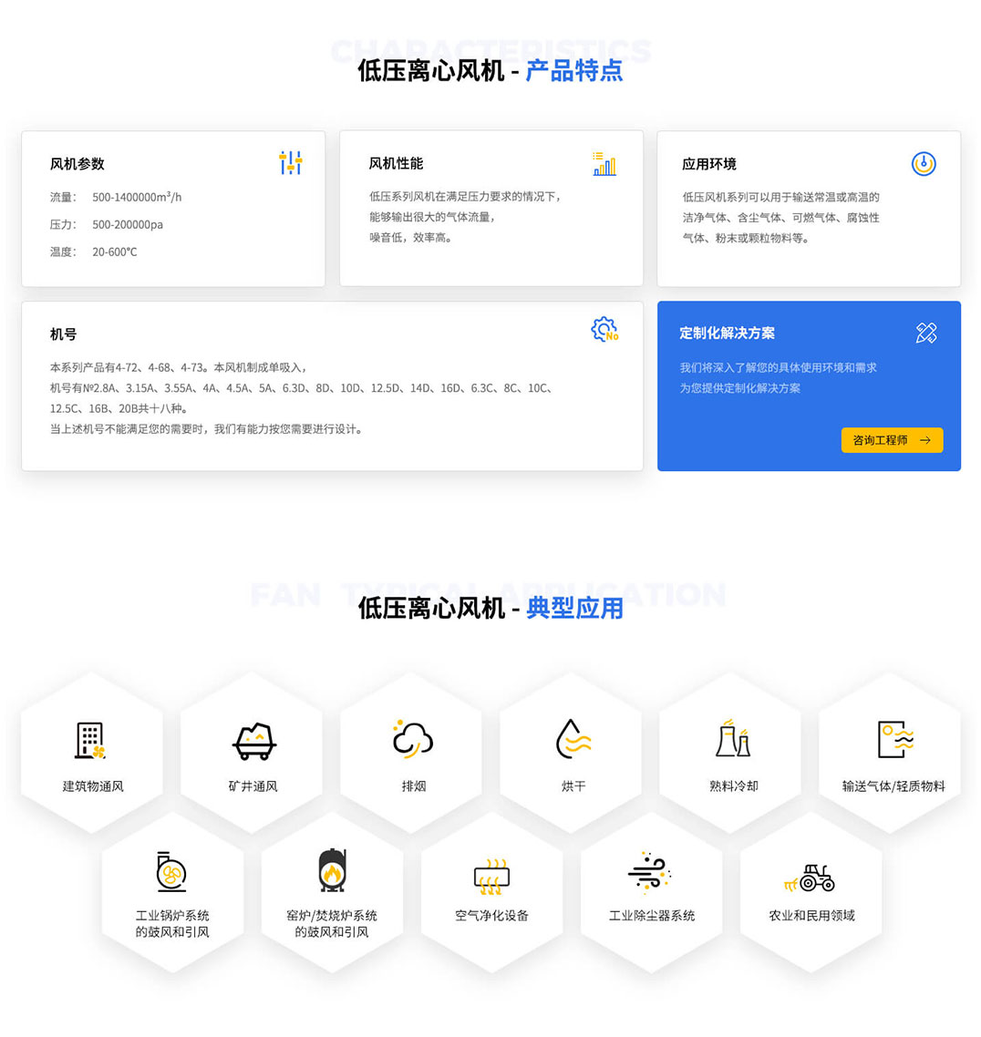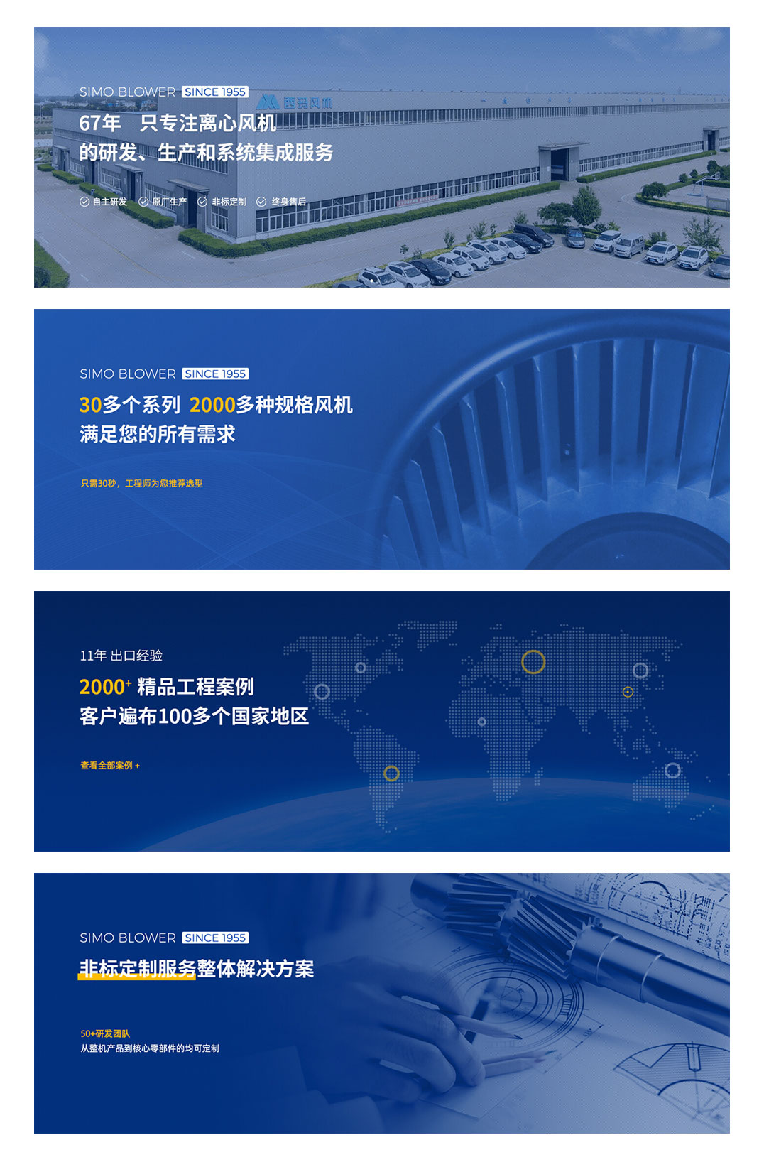 在与西玛工程师的交流中,我们发现西玛风机产品其实很有特点,适合展开讲解。基木鱼原有的产品组件并不能满足这个要求,所以我们决定采用“专题页”的形式来全方位的展示,而不再是枯燥的产品详情页,这样客户才能真正了解到西玛产品特质。