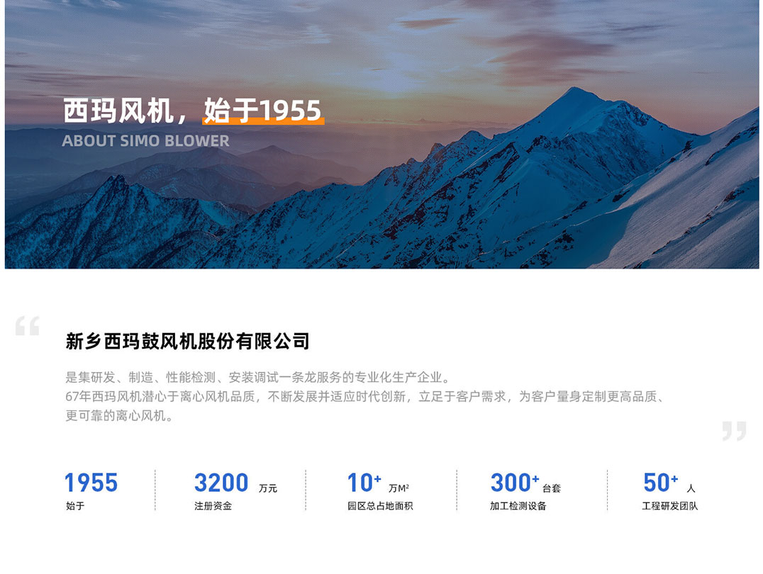 西玛鼓风机股份有限公司前身为新乡市鼓风机厂,于1955年建厂,是原机械工业部风机生产定点厂,我国中部地区规模较大的风机制造企业之一,中国风机协会会员单位,国家高新技术企业。