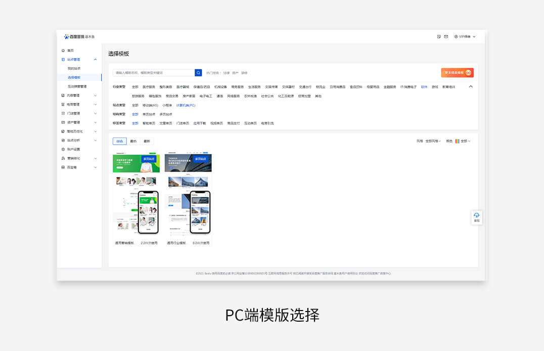 相对于移动端,基木鱼在于PC端上的应用是非常匮乏的,这就造成了模版网站的同质化。同是“软件“分类下的装修模版,移动端和PC端的可选择数量就相差甚远。这就造成了访客访问时,面对的PC站点都是“似曾相识“。