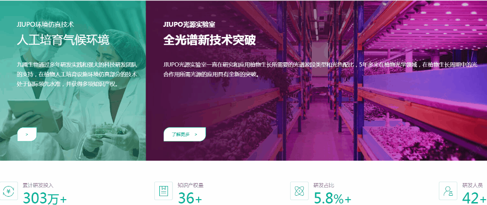 JIUPU生物科技有限公司是一家研发生产植物人工培育气候室的国家高新技术企业。